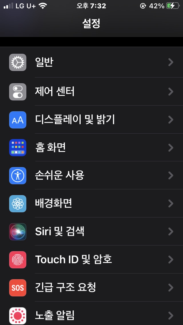 아이폰 설정 화면